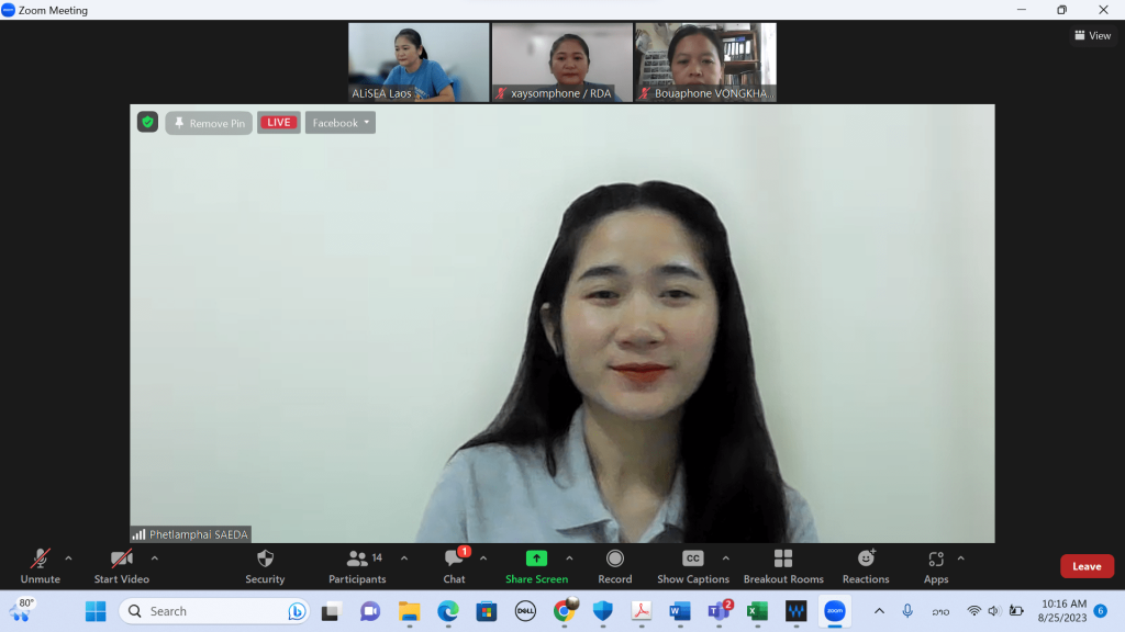 ALiSEA in Laos organized an online thematic talk on “Pesticide Risk Reduction” on August 25, 2023. The talk was presented by two guest speakers from the SAEDA and CCL, two organizations that work on pesticide management in Laos.