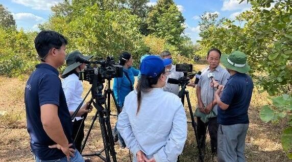 Following this, the journalists met with the ASSET project team to learn about agroecology techniques and practices in cassava fields, the use of weaver ants to control pests in cashew farms, and cover crop cultivation in rice fields in Rovieng district, Preah Vihear Province.
