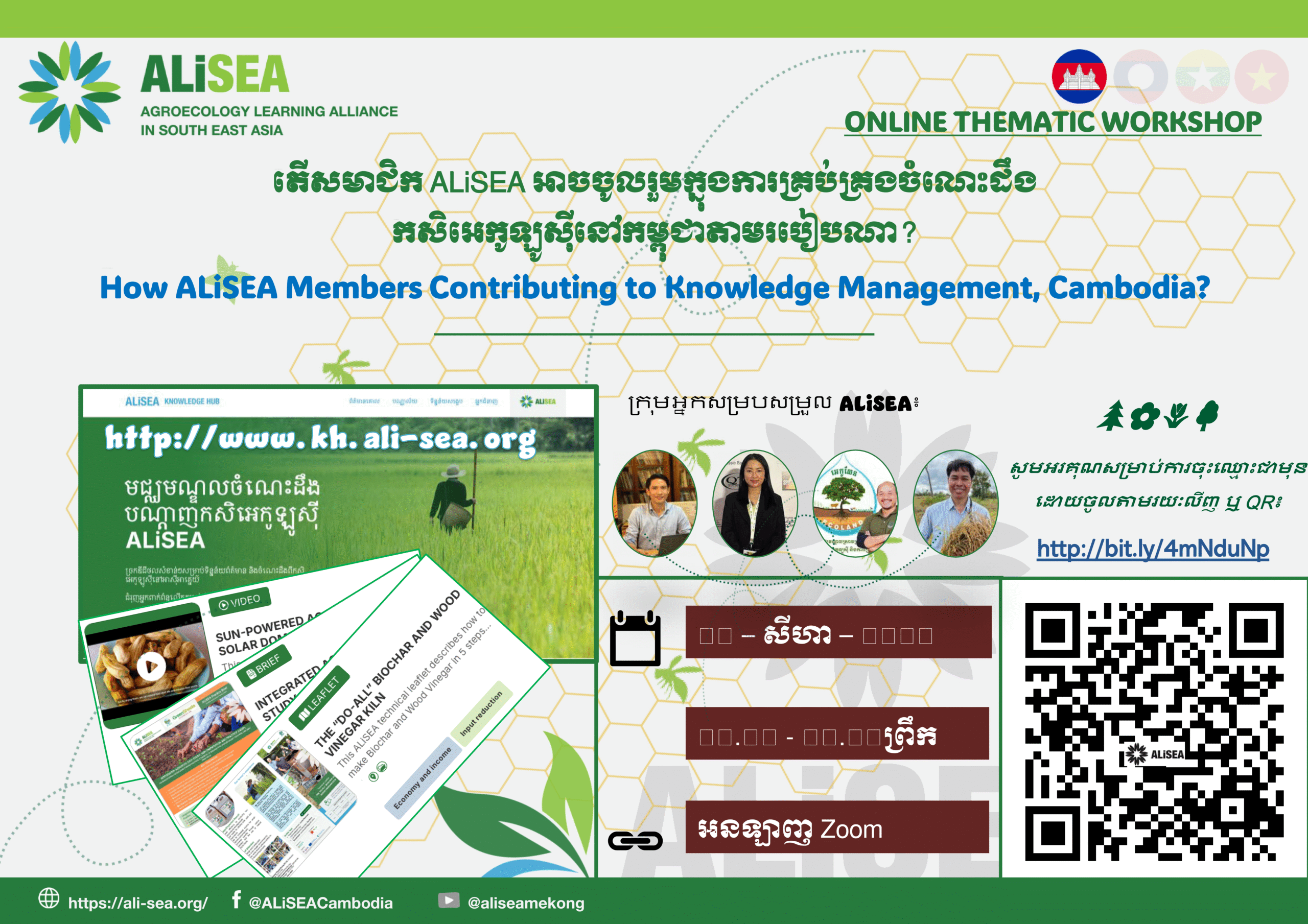 ALiSEA in Cambodia is conducting a thematic workshop on “How ALiSEA Members Could Contribute to Knowledge Management”. Our guest speakers from AVSF (Cambodia), GRET, and ECOLAND are ready to answer your questions which you may have about submitting knowledge products.
