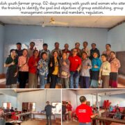 - Organize the training for youth and women on Soft-skills (leadership; team work; community facilitation; goal setting) and technical skills (organic farming; group formative and entrepreneur and marketing)