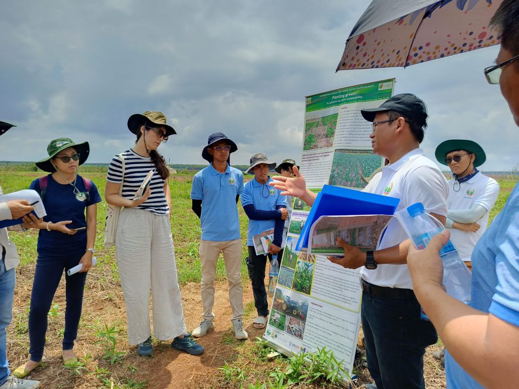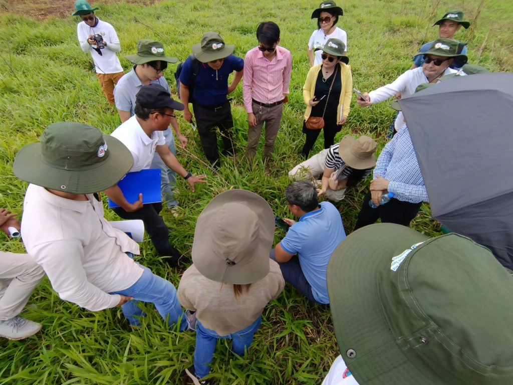 Participants also had the opportunity to embark on a field visit to the Cambodian Conservation Agriculture Research for Development Center (CARDEC) in Kampong Cham province, under the Department of Agricultural Land Resources Management (DALRM) of General Directorate of Agriculture (GDA). CARDEC aspires to become a leading national and regional center in promoting agricultural modernization and agroecology transition. The center is composed of the training campus and the research station (14.5ha). This visit provided an orientation to the center’s activities which are to conduct experimentation and research, , to build capacity for relevant stakeholders, to preserve a large genetic bank of crops genetic resources and to assess and promote agroecological and sustainable intensification-based production systems.